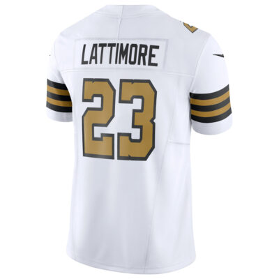This Marshon Lattimore New Orleans Saints White Alternate Vapor F.U.S.E Limited Jersey – All Stitched is an essential piece of gear for any New Orleans Saints fan looking to highlight their favorite jersey and player. The Marshon Lattimore New Orleans Saints White Alternate Vapor F.U.S.E Limited Jersey and team details provide a kickoff-ready look that elevates your excitement for game day. Made with comfort in mind, this Marshon Lattimore New Orleans Saints jersey delivers a standard, lightweight fit and features breathable mesh side panels for added ventilation.