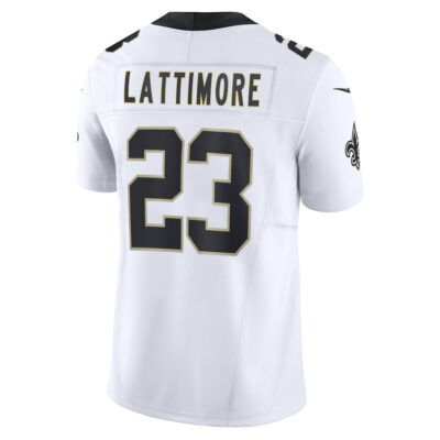 This Marshon Lattimore New Orleans Saints White Road Vapor F.U.S.E Limited Jersey – All Stitched is an essential piece of gear for any New Orleans Saints fan looking to highlight their favorite jersey and player. The Marshon Lattimore New Orleans Saints White Road Vapor F.U.S.E Limited Jersey and team details provide a kickoff-ready look that elevates your excitement for game day. Made with comfort in mind, this Marshon Lattimore New Orleans Saints jersey delivers a standard, lightweight fit and features breathable mesh side panels for added ventilation.