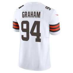 This Mason Graham Cleveland Browns White Away Vapor F.U.S.E Limited Jersey – All Stitched is an essential piece of gear for any Cleveland Browns fan looking to highlight their favorite jersey and player. The Mason Graham Cleveland Browns White Away Vapor F.U.S.E Limited Jersey and team details provide a kickoff-ready look that elevates your excitement for game day. Made with comfort in mind, this Mason Graham Cleveland Browns jersey delivers a standard, lightweight fit and features breathable mesh side panels for added ventilation.