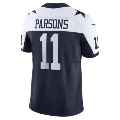 This Micah Parsons Dallas Cowboys Navy Alternate Vapor F.U.S.E Limited Jersey – All Stitched is an essential piece of gear for any Dallas Cowboys fan looking to highlight their favorite jersey and player. The Micah Parsons Dallas Cowboys Navy Alternate Vapor F.U.S.E Limited Jersey and team details provide a kickoff-ready look that elevates your excitement for game day. Made with comfort in mind, this Personalized Dallas Cowboys jersey delivers a standard, lightweight fit and features breathable mesh side panels for added ventilation.