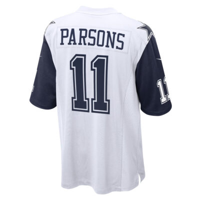 This Micah Parsons Dallas Cowboys White Alternate Game Jersey – All Stitched is an essential piece of gear for any Dallas Cowboys fan looking to highlight their favorite jersey and player. The Micah Parsons Dallas Cowboys White Alternate Game Jersey and team details provide a kickoff-ready look that elevates your excitement for game day. Made with comfort in mind, this Personalized Dallas Cowboys jersey delivers a standard, lightweight fit and features breathable mesh side panels for added ventilation.