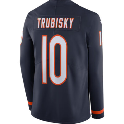 Mitchell Trubisky Chicago Bears Navy Therma Long Sleeve Jersey – All Stitched