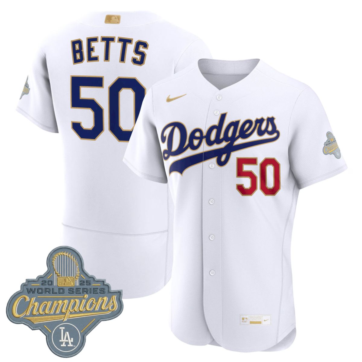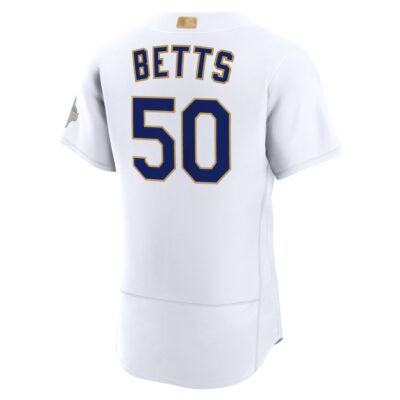 Elevate your game day attire with the Mookie Betts Los Angeles Dodgers White 2026 Gold Collection Limited Jersey. This all stitched piece showcases your loyalty to a player who has solidified his legacy in Los Angeles with incredible fielding and hitting, leading the team to a championship title. This premium jersey is designed for comfort and style, making it a standout choice for any fan of the Blue Crew. Whether you are heading to the stadium or watching from home, this item reflects true California sports pride.