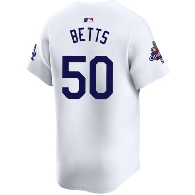 This Mookie Betts Los Angeles Dodgers White Home Limited Jersey – All Stitched is an essential piece of gear for any Los Angeles Dodgers fan looking to highlight their favorite jersey and player. The Mookie Betts Los Angeles Dodgers White Home Limited Jersey and team details provide a kickoff-ready look that elevates your excitement for game day. Made with comfort in mind, this Mookie Betts Los Angeles Dodgers jersey delivers a standard, lightweight fit and features breathable mesh side panels for added ventilation.