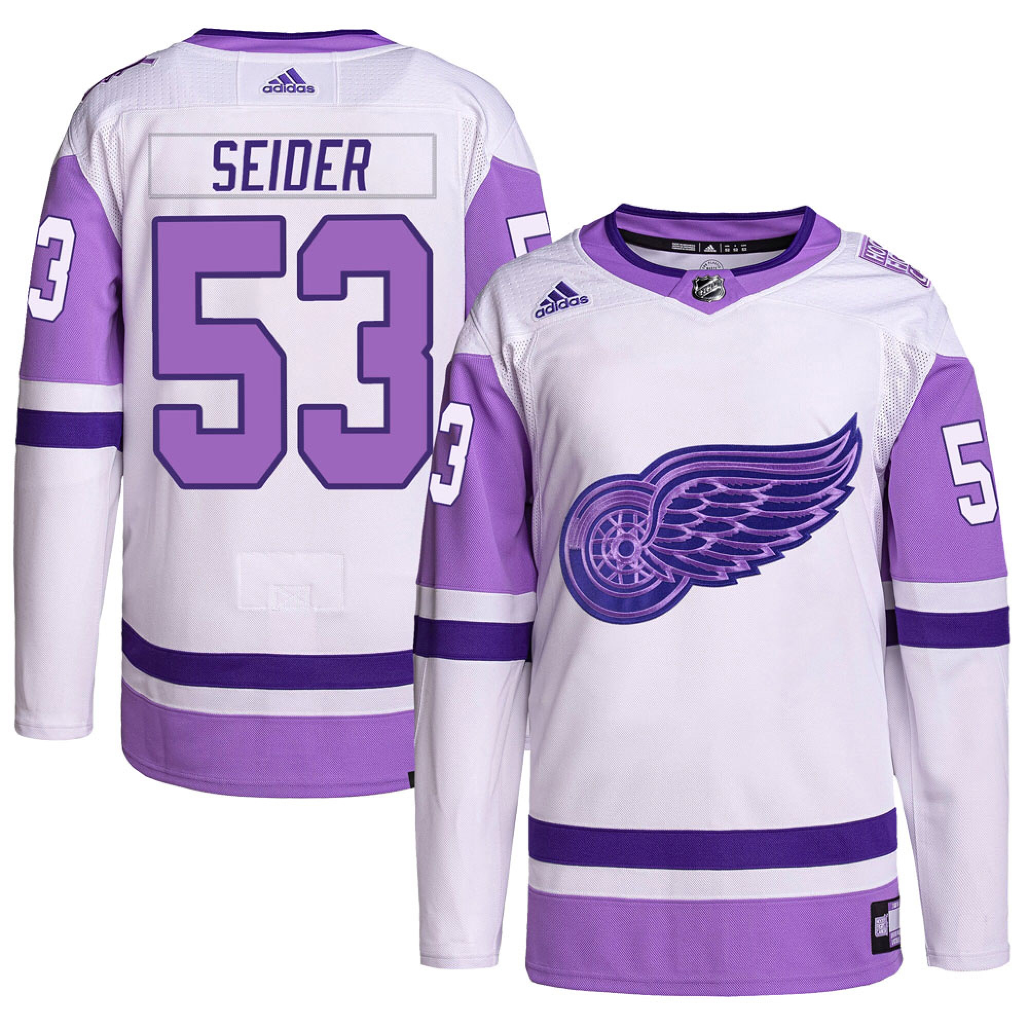 Support the fight for a cause with the Moritz Seider Detroit Red Wings White Purple Hockey Fights Cancer Primegreen Jersey – All Stitched. Dedicated to raising awareness and unity, this special edition celebrates strength, resilience, and community. Crafted from sustainable Primegreen materials, it features stitched and embroidered name, number 53, crest, and purple-themed patches that honor those impacted by cancer. The Red Wings (DET) design proudly blends Detroit spirit with compassion, representing Michigan pride and hockey solidarity. Wearing this jersey means standing for something greater — hope, courage, and the fight that connects us all.