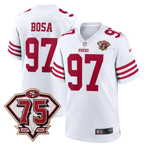 This white 75th Anniversary style honors the San Francisco 49ers and Nick Bosa’s dominant presence on the defensive line. His strength and speed make him a constant threat to opponents. The 49ers short name reflects resilience and California pride. The anniversary emblem commemorates 75 historic seasons. With fully stitched detailing, it’s ideal for collectors and game-day supporters alike. Satisfied by thousands of customers.