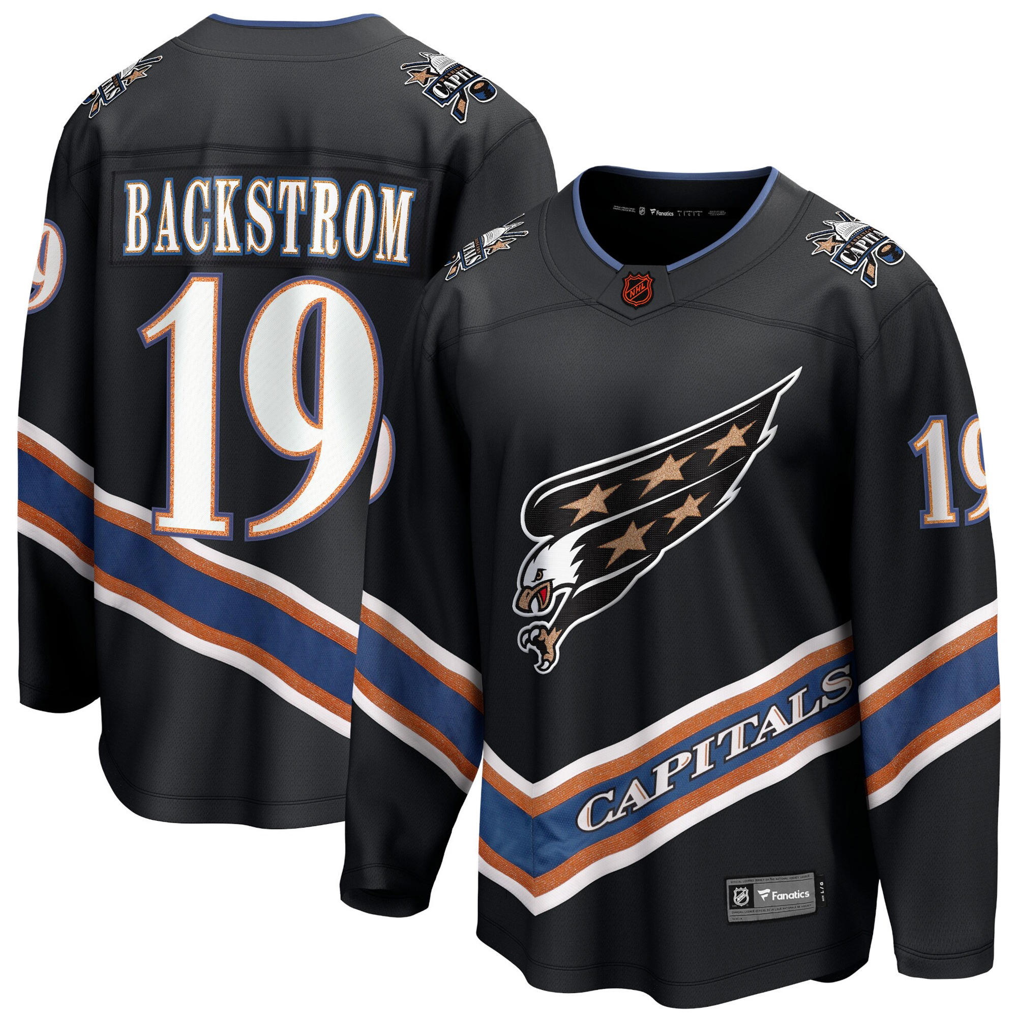 Step into bold style with the Black Alternate Breakaway Jersey from the Washington Capitals. Featuring Nicklas Backstrom’s name and number in precision stitching, this dark edition channels confidence and strength. The embroidered logo and stitched team patches add rich texture, while the modern black colorway pays homage to Washington’s fierce competitive edge. A must-have for fans who love standing out while showing their Capitals state pride.