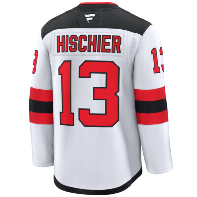 Cheer on the road with the Nico Hischier New Jersey Devils White Away Premium Jersey. Featuring stitched crests, embroidered name and number, and patches, this clean look reflects Hischier’s excellence and New Jersey’s pride outside home ice.