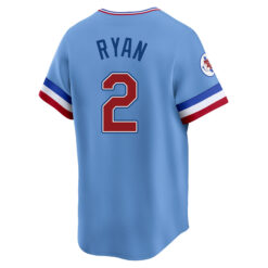 This Nolan Ryan Texas Rangers Light Blue 1981-82 Cooperstown Limited Jersey – All Stitched is an essential piece of gear for any Texas Rangers fan looking to highlight their favorite jersey and player. The Nolan Ryan Texas Rangers Light Blue 1981-82 Cooperstown Limited Jersey and team details provide a kickoff-ready look that elevates your excitement for game day. Made with comfort in mind, this Texas Rangers jersey delivers a standard, lightweight fit and features breathable mesh side panels for added ventilation.