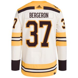 Celebrate Boston tradition with the Boston Bruins Cream Alternate Primegreen Jersey for Patrice Bergeron. This timeless design features a vintage cream tone symbolizing the team’s century-long excellence and Massachusetts pride. Built with Primegreen materials, it showcases stitched name, number, embroidered logos, and alternate team patches for premium quality. Bergeron’s legacy shines through in every detail, making this jersey a perfect tribute to both Boston’s hockey heritage and its commitment to sustainability.
