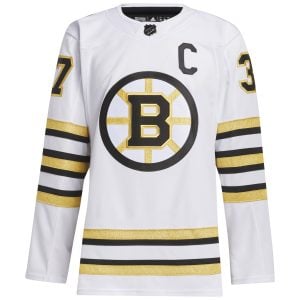 Celebrate the Boston Bruins wherever they play with the White Away Primegreen Jersey honoring Patrice Bergeron. This crisp white look symbolizes class, unity, and Boston’s hockey legacy. Constructed with sustainable Primegreen materials, it includes stitched name, number, embroidered logos, and detailed team patches that deliver a premium finish. Bergeron’s name proudly sits on the back, representing his steady leadership and commitment to excellence. Perfect for showing your Bruins pride whether at home or on the road, this jersey blends performance, tradition, and state pride seamlessly.
