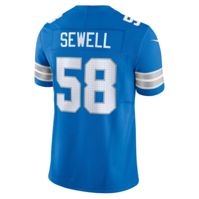 This Penei Sewell Detroit Lions Blue Home Vapor F.U.S.E Limited Jersey – All Stitched is an essential piece of gear for any Detroit Lions fan looking to highlight their favorite jersey and player. The Penei Sewell Detroit Lions Blue Home Vapor F.U.S.E Limited Jersey and team details provide a kickoff-ready look that elevates your excitement for game day. Made with comfort in mind, this Penei Sewell Detroit Lions jersey delivers a standard, lightweight fit and features breathable mesh side panels for added ventilation.