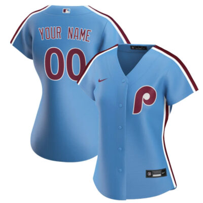 We want fans to celebrate your fandom by personalizing your gear, like jerseys, with your own text. For these customizable products, including jerseys, we invite customers to tell us how they would like their preferred name or other text to appear by typing that text into the field indicated. Give your jersey collection a boost with the help of this Philadelphia Phillies Powder Blue Throwback Jersey. Get your young fan geared up in this eco-friendly Custom Philadelphia Phillies Powder Blue Throwback Jersey, boasting Philadelphia Phillies graphics for an fantastic feel on the field.