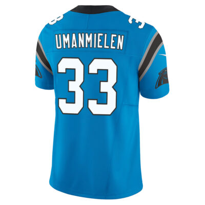This Princely Umanmielen Carolina Panthers Light Blue Alternate Vapor F.U.S.E Limited Jersey – All Stitched is an essential piece of gear for any Carolina Panthers fan looking to highlight their favorite jersey and player. The Princely Umanmielen Carolina Panthers Light Blue Alternate Vapor F.U.S.E Limited Jersey and team details provide a kickoff-ready look that elevates your excitement for game day. Made with comfort in mind, this Princely Umanmielen Carolina Panthers jersey delivers a standard, lightweight fit and features breathable mesh side panels for added ventilation.
