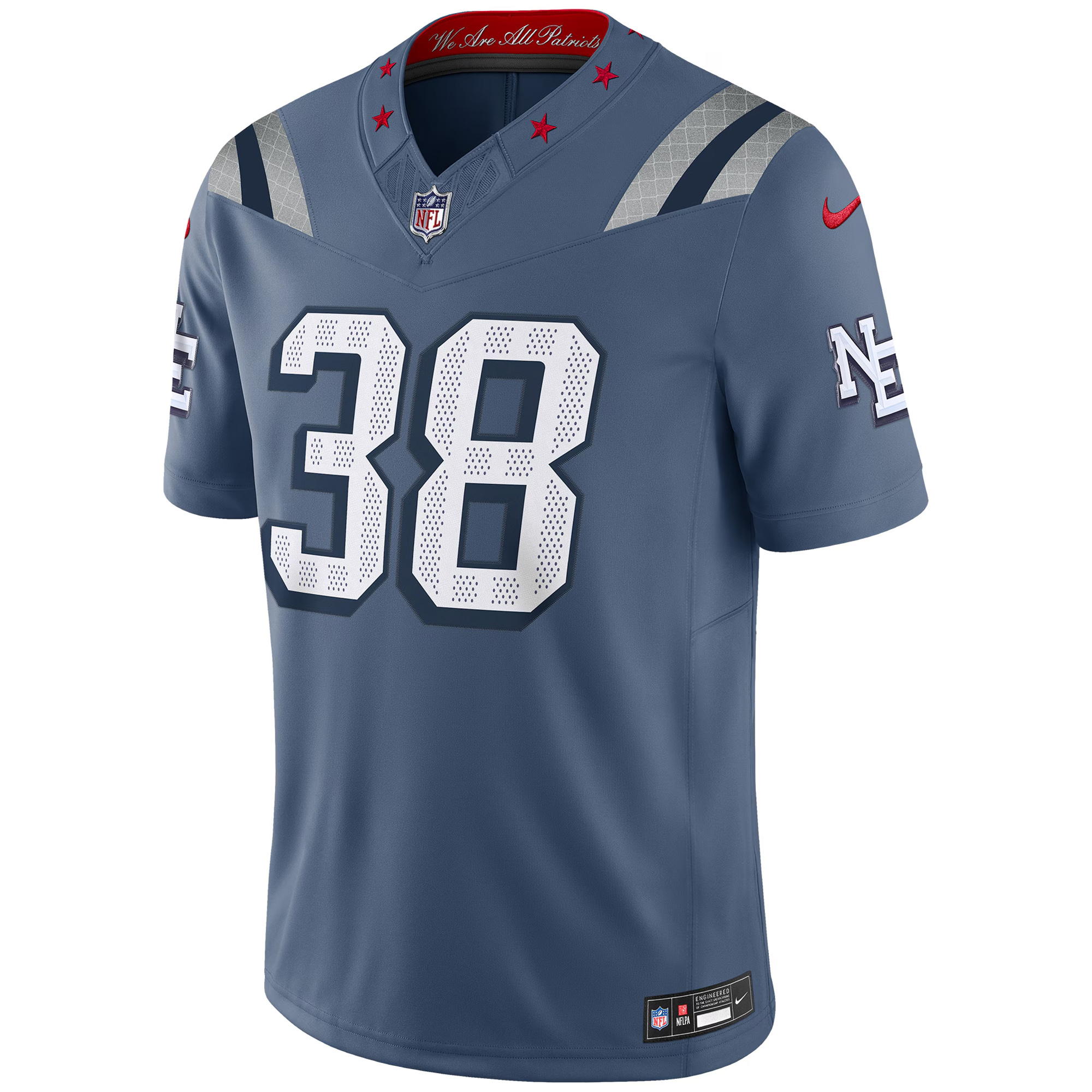 Power through with the Rhamondre Stevenson New England Patriots Storm Blue 2025 Rivalries Collection Limited Jersey. This Limited Rivalries edition brings standard fit, Dri-FIT performance, twill name and numbers by heat-transfer, and a chainmaille mesh grill at the collar. Combined with stitched patch, player details, and embroidered logos, it unites Massachusetts passion with modern Patriots style.