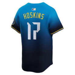 This Rhys Hoskins Philadelphia Phillies Navy City Connect Limited Jersey – All Stitched is an essential piece of gear for any Philadelphia Phillies fan looking to highlight their favorite jersey and player. The Rhys Hoskins Philadelphia Phillies Navy City Connect Limited Jersey and team details provide a kickoff-ready look that elevates your excitement for game day. Made with comfort in mind, this Philadelphia Phillies jersey delivers a standard, lightweight fit and features breathable mesh side panels for added ventilation.