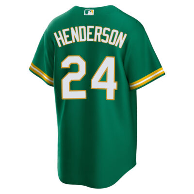 This Rickey Henderson Oakland Athletics Green Alternate Jersey – All Stitched is an essential piece of gear for any Oakland Athletics fan looking to highlight their favorite jersey and player. The Rickey Henderson Oakland Athletics Green Alternate Jersey and team details provide a kickoff-ready look that elevates your excitement for game day. Made with comfort in mind, this Oakland Athletics jersey delivers a standard, lightweight fit and features breathable mesh side panels for added ventilation.