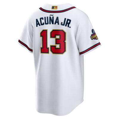 Ronald Acuna Jr Atlanta Braves White 2022 Gold Program Jersey – All Stitched