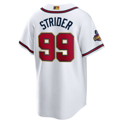 This Spencer Strider Atlanta Braves White 2022 Gold Program Jersey – All Stitched is an essential piece of gear for any Atlanta Braves fan looking to highlight their favorite jersey and player. The Spencer Strider Atlanta Braves White 2022 Gold Program Jersey and team details provide a kickoff-ready look that elevates your excitement for game day. Made with comfort in mind, this Atlanta Braves jersey delivers a standard, lightweight fit and features breathable mesh side panels for added ventilation.