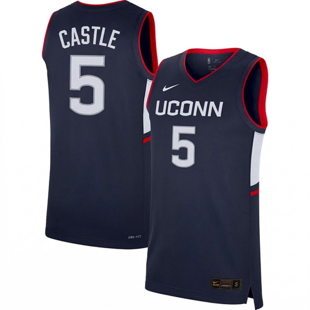 Show your Connecticut state pride with the Stephon Castle UConn Huskies Basketball Navy Game Jersey. This all stitched apparel is a must-have for any dedicated member of the Huskies fan base. Stephon Castle made a massive impact in Storrs, helping lead the team to a national championship with his elite playmaking and defensive skill. This navy game jersey captures the electric atmosphere of Gampel Pavilion. Featuring high-quality craftsmanship, it is built for comfort and durability. We are satisfied by thousands of customers who value our attention to detail. This piece is perfect to buy for your love of the team or as a great gift for any basketball enthusiast looking to represent the legendary UConn program.