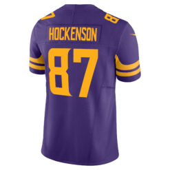 The T.J. Hockenson Minnesota Vikings Purple Alternate Vapor F.U.S.E Limited Jersey – All Stitched provides a bold look for fans of Minnesota football. Featuring stitched numbers, embroidered Vikings logos, and innovative Vapor F.U.S.E design, it delivers style and state pride with every wear.