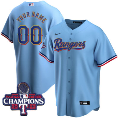Texas Rangers 2024 Gold Collection Light Blue Custom Jersey - All Stitched