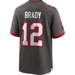 Tom Brady Tampa Bay Buccaneers Pewter Alternate Game Jersey – All Stitched celebrates Florida toughness with a modern pewter tone that defines the Buccaneers’ identity. Every detail, from Brady’s stitched number to the embroidered logos and patches, connects Bucs tradition with Brady’s legendary career, making it a true statement of Tampa Bay pride.