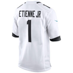 Take Jaguars energy on the road with the Travis Etienne Jacksonville Jaguars White Road Game Jersey – All Stitched. With its crisp white design, stitched Etienne number and name, embroidered patches, and official Jaguars logos, this jersey ensures Jacksonville pride shines bright no matter where in Florida—or across the country—the Jaguars play.