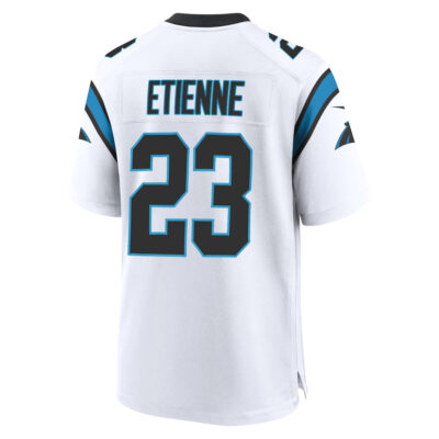 This Trevor Etienne Carolina Panthers White Road Game Jersey – All Stitched is an essential piece of gear for any Carolina Panthers fan looking to highlight their favorite jersey and player. The Trevor Etienne Carolina Panthers White Road Game Jersey and team details provide a kickoff-ready look that elevates your excitement for game day. Made with comfort in mind, this Trevor Etienne Carolina Panthers jersey delivers a standard, lightweight fit and features breathable mesh side panels for added ventilation.