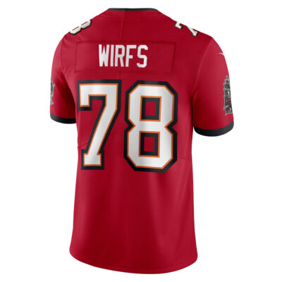 Tristan Wirfs Tampa Bay Buccaneers 50th Season Red Home Vapor Limited Jersey – All Stitched updates the anniversary design with Vapor performance. Stitched player numbers, embroidered logos, and commemorative patches highlight both Wirfs’ presence and Tampa Bay’s Florida football legacy.