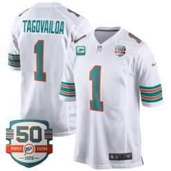 Tua Tagovailoa Miami Dolphins Alternate White Game Jersey – All Stitched