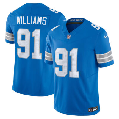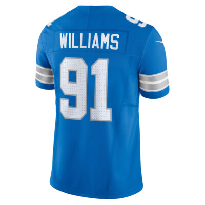 This Tyleik Williams Detroit Lions Blue Home Vapor F.U.S.E Limited Jersey – All Stitched is an essential piece of gear for any Detroit Lions fan looking to highlight their favorite jersey and player. The Tyleik Williams Detroit Lions Blue Home Vapor F.U.S.E Limited Jersey and team details provide a kickoff-ready look that elevates your excitement for game day. Made with comfort in mind, this Tyleik Williams Detroit Lions jersey delivers a standard, lightweight fit and features breathable mesh side panels for added ventilation.