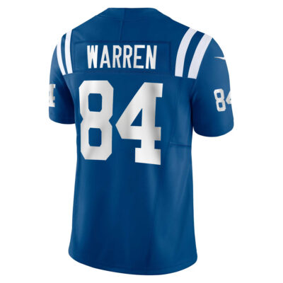 This Tyler Warren Indianapolis Colts Royal Blue Home Vapor F.U.S.E Limited Jersey – All Stitched is an essential piece of gear for any Indianapolis Colts fan looking to highlight their favorite jersey and player. The Tyler Warren Indianapolis Colts Royal Blue Home Vapor F.U.S.E Limited Jersey and team details provide a kickoff-ready look that elevates your excitement for game day. Made with comfort in mind, this Personalized Indianapolis Colts jersey delivers a standard, lightweight fit and features breathable mesh side panels for added ventilation.