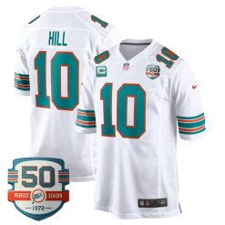 This Tyreek Hill White Dolphins Jersey is an essential piece of gear for any Miami Dolphins fan looking to highlight their favorite player. The Miami Dolphins Tyreek Hill Jersey and team details provide a kickoff-ready look that elevates your excitement for game day. Made with comfort in mind, this Miami Dolphins jersey delivers a standard, lightweight fit and features breathable mesh side panels for added ventilation.