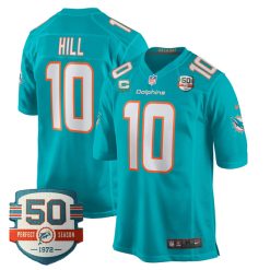This Tyreek Hill Aqua Jersey is an essential piece of gear for any Miami Dolphins fan looking to highlight their favorite player. The Miami Dolphins Tyreek Hill Jersey and team details provide a kickoff-ready look that elevates your excitement for game day. Made with comfort in mind, this Miami Dolphins jersey delivers a standard, lightweight fit and features breathable mesh side panels for added ventilation.