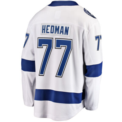 Show your loyalty on the road with the Victor Hedman Tampa Bay Lightning White Away Jersey – All Stitched. Featuring embroidered Lightning logos, stitched name and number, and refined team graphics, this piece represents Tampa Bay unity and the unwavering support of its fans across Florida.