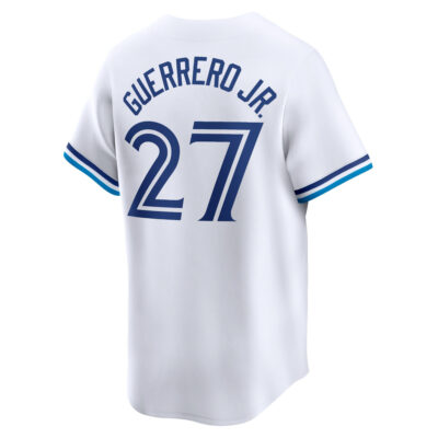 This Vladimir Guerrero Jr Toronto Blue Jays White Throwback Limited Jersey – All Stitched is an essential piece of gear for any Toronto Blue Jays fan looking to highlight their favorite jersey and player. The Vladimir Guerrero Jr Toronto Blue Jays White Throwback Limited Jersey and team details provide a kickoff-ready look that elevates your excitement for game day. Made with comfort in mind, this Toronto Blue Jays jersey delivers a standard, lightweight fit and features breathable mesh side panels for added ventilation.