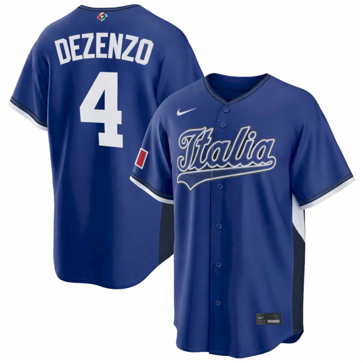 Celebrate the spirit of international competition with the Zach Dezenzo Italy Baseball 2026 World Baseball Classic Royal Road Jersey. This all-stitched jersey honors rising star Zach Dezenzo, known for his incredible power and versatility as a top-tier prospect making waves in the professional ranks. Designed for comfort and style, this garment allows you to represent your heritage during the biggest tournament in the world. Satisfied by thousands of customers, our products provide the quality you expect for every game day. It is perfect to buy for your love of sports or as a great gift for any fan looking to support the Italian national squad. This royal blue jersey is an essential addition to your collection for the 2026 season.