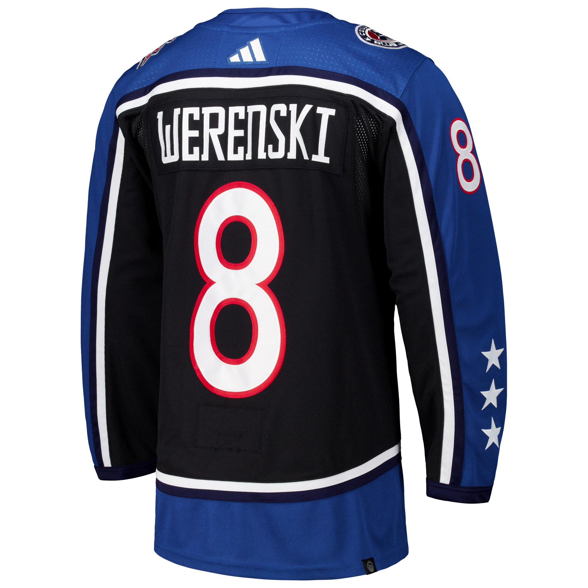 Play sustainably with the Zach Werenski Columbus Blue Jackets Black Reverse Retro 2.0 Primegreen Jersey. Constructed with eco-conscious Primegreen materials and stitched details across logo, numbers, name, and patches, this jersey balances environmental responsibility with CBJ pride. A smart choice for fans who cheer with purpose.